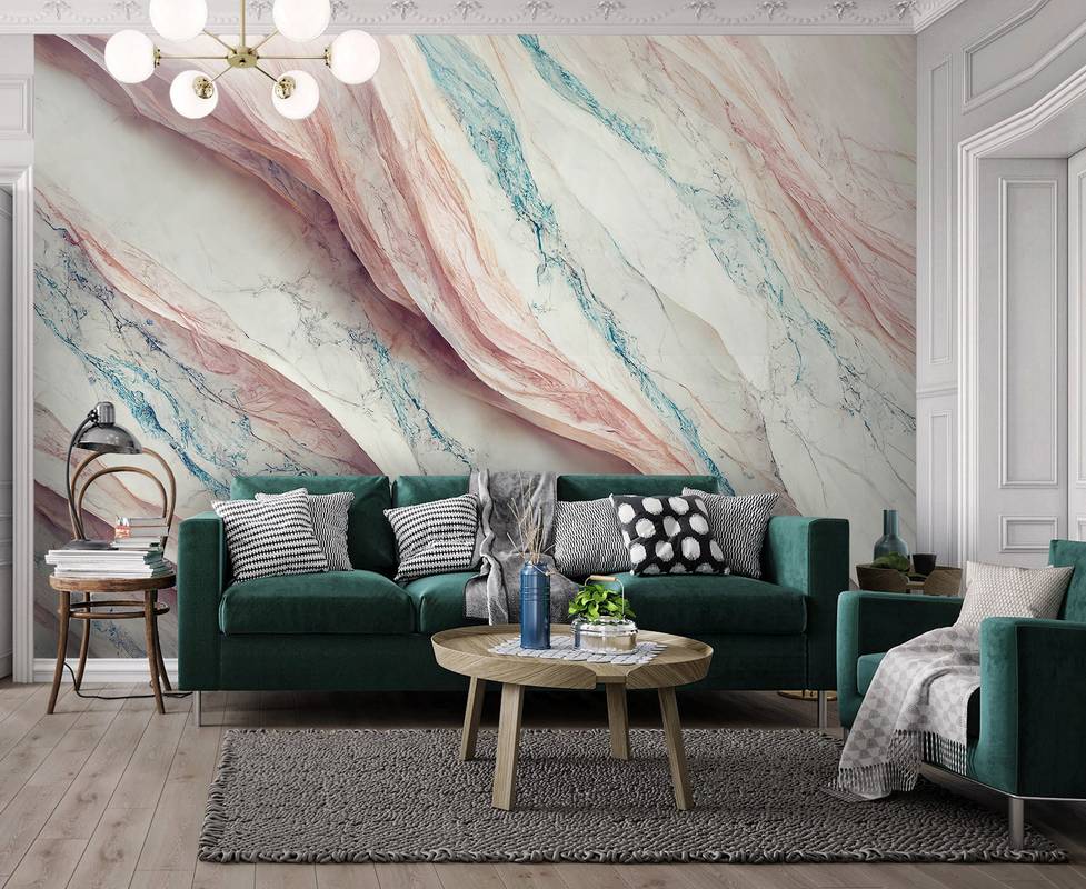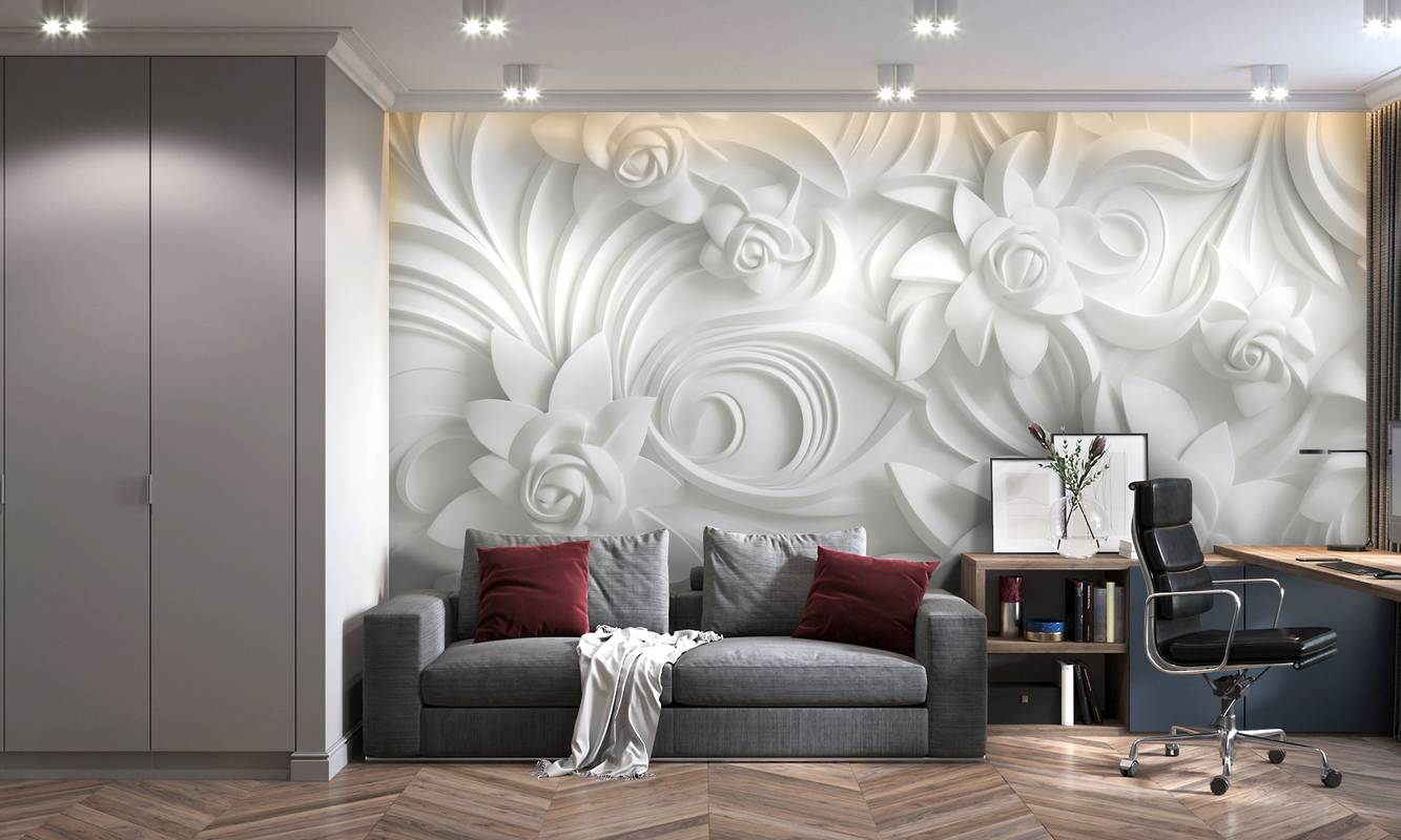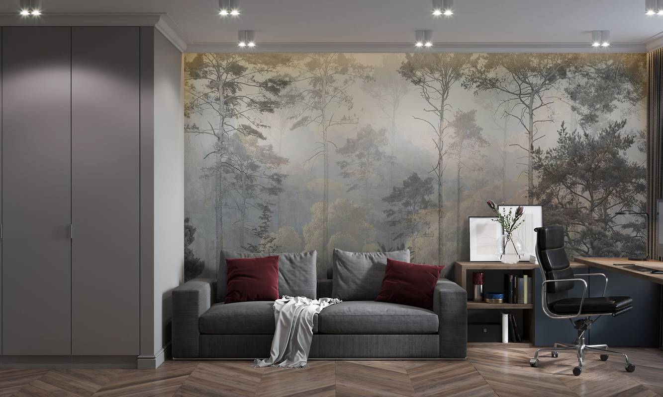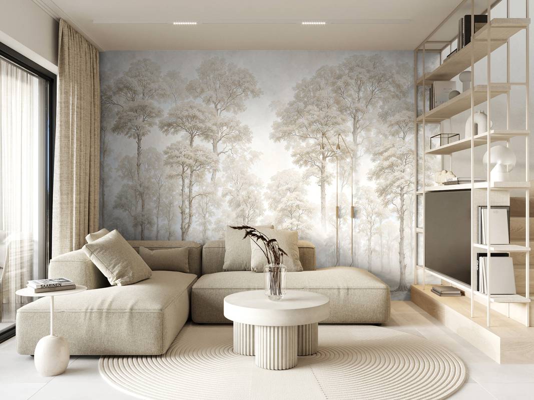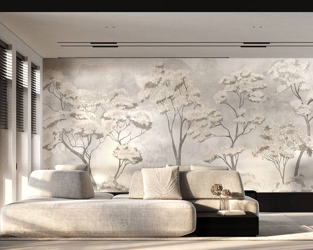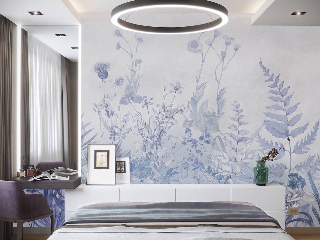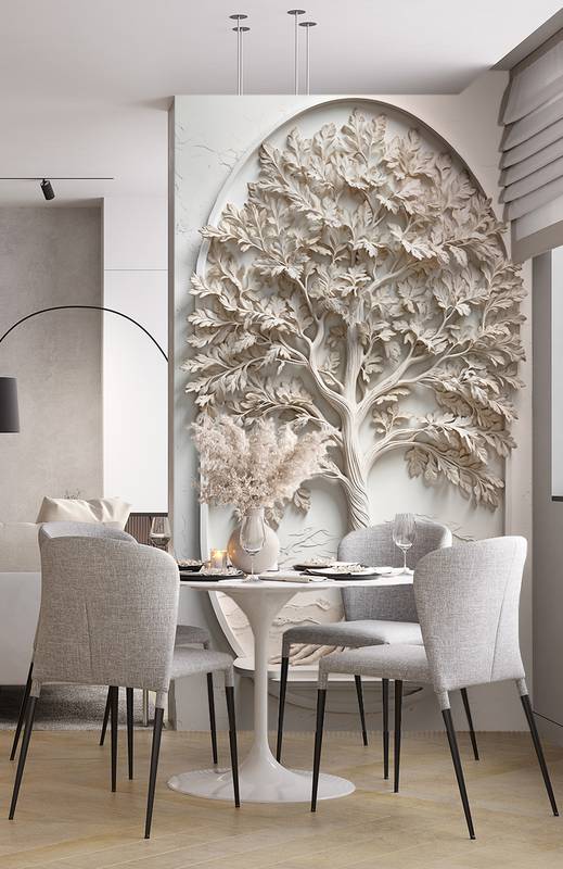 Бесшовная фреска на гибкой нетканой основе из полиэфирных волокон, с гладкой матовой поверхностью, удобная в поклейке.