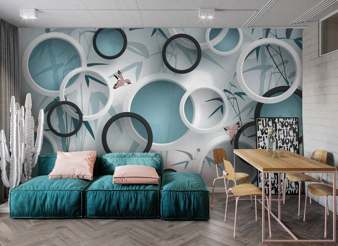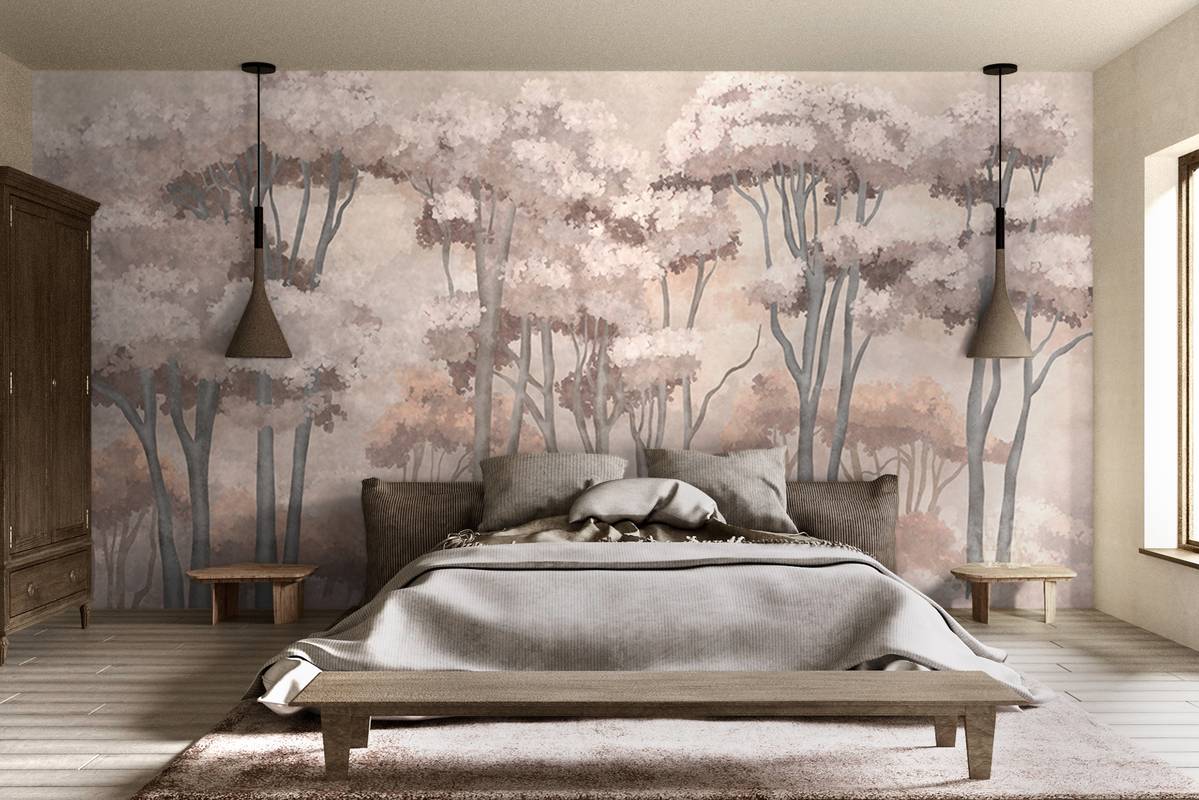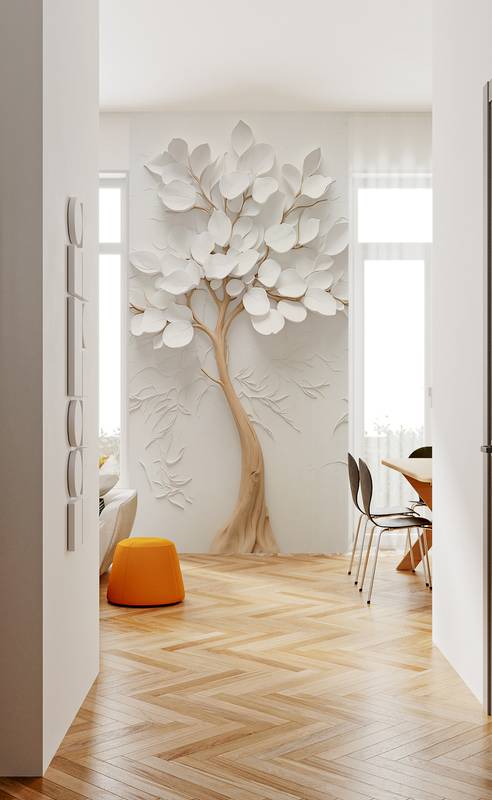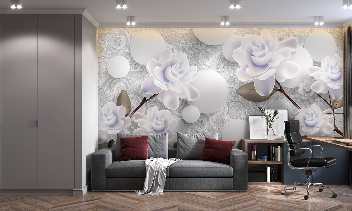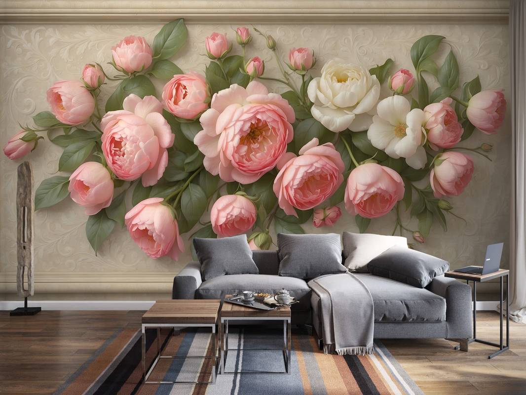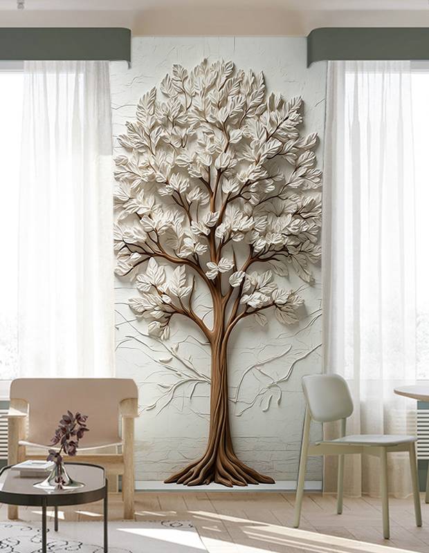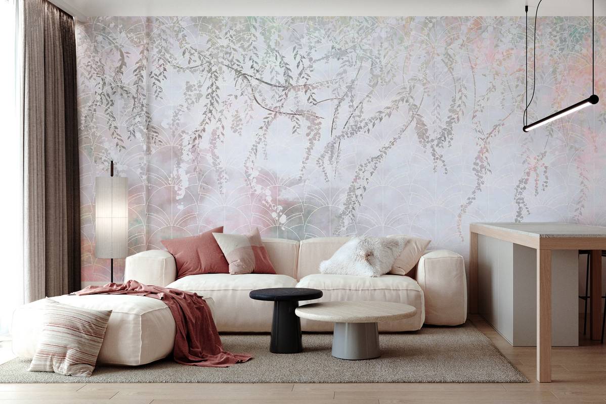 Бесшовная фреска на гибкой нетканой основе из полиэфирных волокон, с гладкой матовой поверхностью, удобная в поклейке.